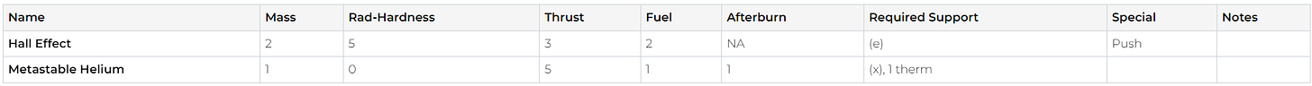 Alternatively, I could use the Metastable Helium with the Mini-Mag RF Paul Trap. The -3 thrust hurts, and it would double the total journey time, but I think I can make it work, and the 1 fuel consumption is useful.