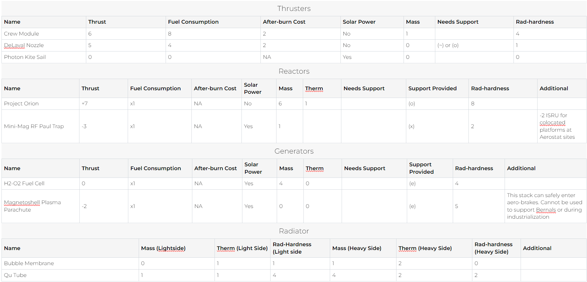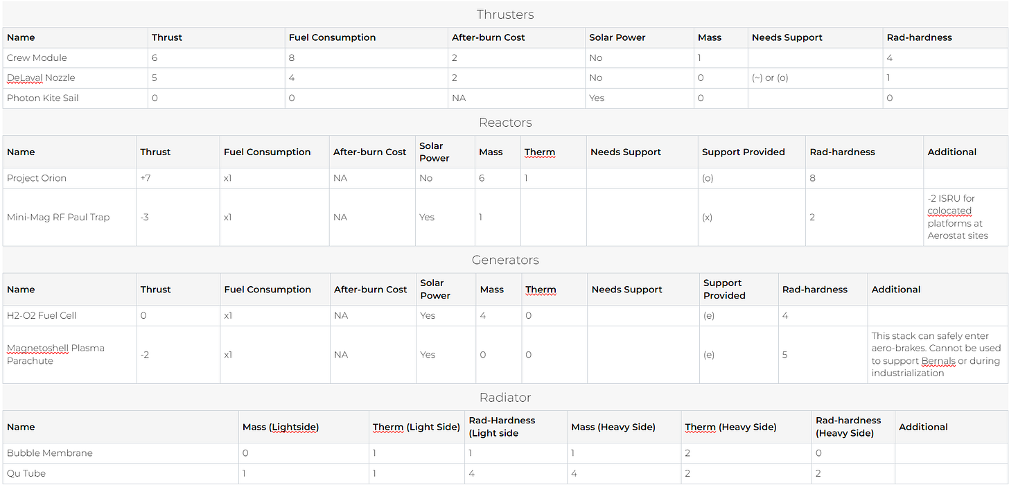 This section gets pretty technically involved, dealing with the specific intricacies of how spacecraft in 60 Years In Space and the boardgame High Frontier work with space components. If that isn’t interesting, I’d encourage skipping it entirely.